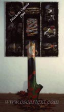 Le mie ricerche artistiche raccontano, a volte in modo beffardo, a volte più riflessivamente, frammenti di una storia unitaria: quella dell'origine della natura e della cultura. Uso materiali recuperati dall'ambiente (natura) e quelli costruiti dall'uomo (cultura) perchè si compensino e trovino punti d'incontro costruttivo e senza nostalgie. Penso che natura e cultura si scontrino, si fondino, si compensino. Della natura tutti ne traggono vantaggi e svantaggi; la cultura è un privilegio, una ricerca, una fortuna. Per usufruire di entrambe c'è l'arte, che inoltre fa bene alla salute e mantiene giovani ... forse. Mi piace l'epoca in cui vivo, ma io sono natura, sono nella natura e non lo dimentico mai. In un'epoca complessa come la nostra, ricca d'immagini e di eventi, in arte bisogna essere semplici, originali e originari. Essere semplici per esprimere la complessità che la nostra evoluzione ci chiede. Si può essere veramente nel futuro conoscendo la propria storia, la propria origine, in tutti i sensi. Elisabetta Coppola |