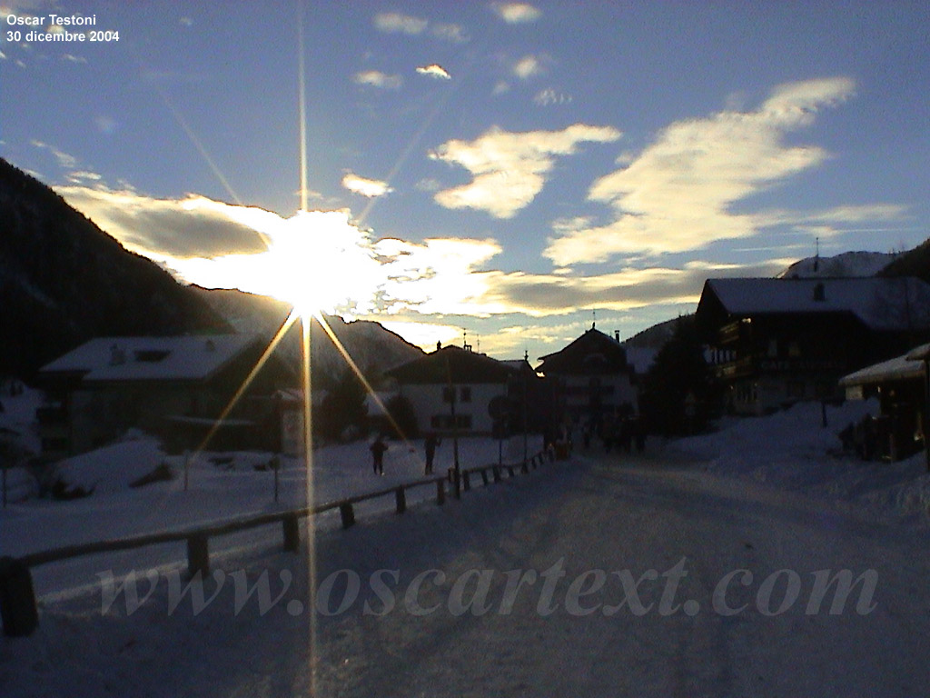 Il tramonto dietro il piccolo centro abitato di Kasern