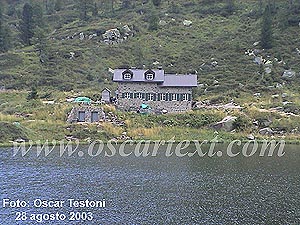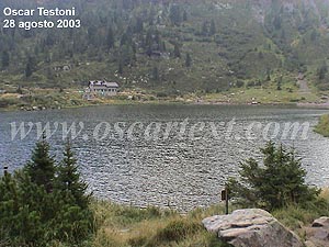 Il pi� grande dei due laghetti di Colbricon e rifugio Colbricon (1927 m)