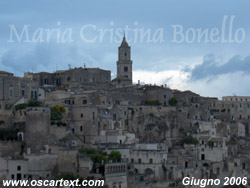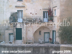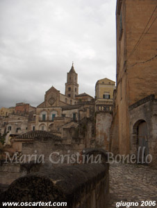 Camminare virtualmente con Maria Cristina per le strade di Matera ci fa vivere i contrasti di chiari e scuri, di fughe vero l'infinito e di scorci angusti, di sguardi d'insieme e di particolari,