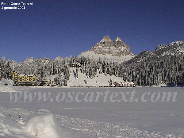 Il lago di Misurina in inverno (3 gennaio 2004) m. 1752-1756 s.l.m. nel Comune di Auronzo di Cadore Sullo sfondo le Tre Cime di Lavaredo.