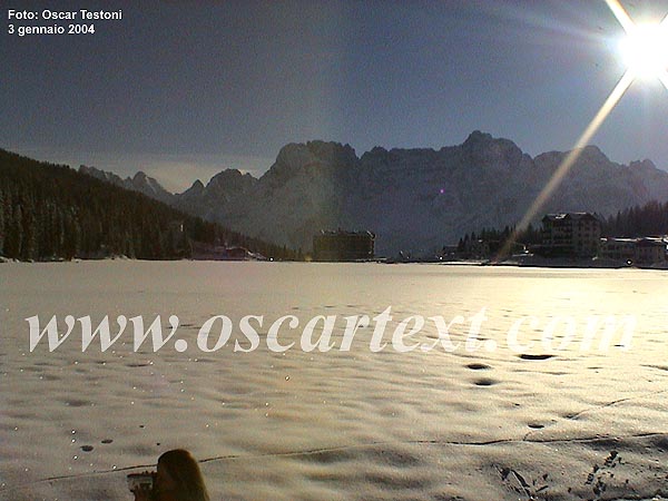 Il lago di Misurina in inverno (3 gennaio 2004) m. 1752-1756 s.l.m. nel Comune di Auronzo di Cadore Sullo sfondo il Sorapis.