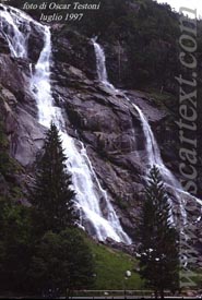 Fragorose e maestose, con i suoi due rami di bianca acqua scrosciante che incorniciano il balzo di roccia scura: tali si aprono all'improvviso sulla destra le cascate di Nardis per chi, provenendo da Carisolo (m. 808 s.l.m.), si addentri nella selvaggia Val Genova.